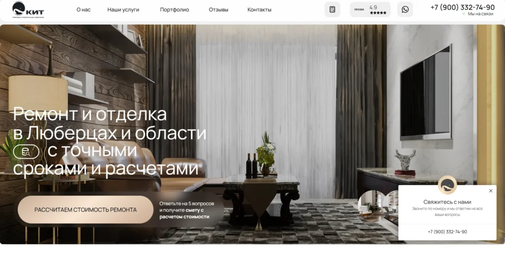 В числе преимуществ — собственные бригады, профессиональный контроль и ответственность за сроки. Компания сотрудничает с дизайнерскими бюро и застройщиками.