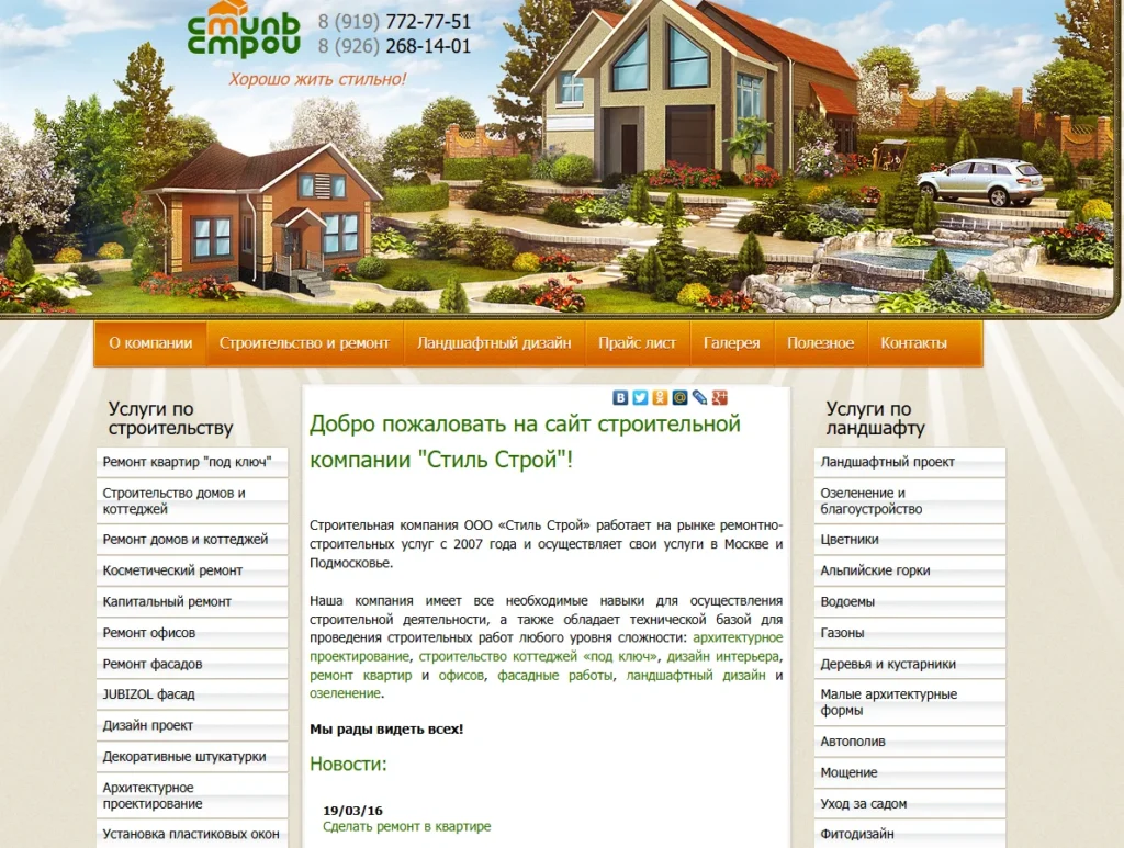 Основные направления — строительство коттеджей, монолитные и каркасные технологии, отделка и ремонт.