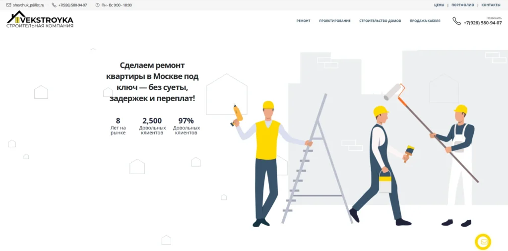 Выполняет ремонт квартир «под ключ» в Москве, Щёлкове, Ивантеевке и по Подмосковью — от косметического до дизайнерского, а также ремонт комнат, офисов, домов и коттеджей. Компания предлагает проектирование, строительство домов, сантехнические работы, комплексный монтаж электросистем и отделку под разные стили (ретро, прованс, сканди, классика). Модель работы: бесплатная смета, согласованный график, договор с прописанными сроками и гарантия. В производственном блоке — демонтаж, выравнивание, стяжка, инженерные сети, плитка, покраска/обои, потолочные решения, установка дверей и плинтусов. Портфолио и отзывы доступны на сайте; для клиента это прозрачное подтверждение компетенций и качества. Команда делает акцент на аккуратности узлов (углы, примыкания, откосы), соблюдении СНиП и допусков, что важно для ресурса отделки и гарантии. За счёт охвата нескольких локаций Vek-Stroyka оперативно выезжает на замеры и закрывает типовые задачи по новостройкам и вторичке — от «чернового под отделку» до полного «дизайнерского» с комплектацией.
